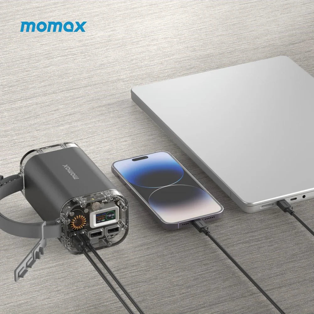 تصميم موماكس الصناعي الجمالي، شحن سريع ١٠٠ واط، تكوين ٢C٢A. إضاءة LED مدمجة، شاشة TFT متعددة الوظائف، سعة كبيرة ٤٠٠٠٠ مللي أمبير/ساعة، مقاومة للماء والغبار بمعيار IP67، منفذ USB مزود بأجهزة مقاومة للماء خاصة، مناسبة لمختلف البيئات الخارجية. تصميم ٢A٢C بسعة كبيرة وإخراج عالي، ومفتاح للتحكم في درجة الحرارة في طرف البطارية لضمان الاستخدام الآمن. تصميم شفاف | استمرار تصميم موماكس الصناعي الجمالي، شحن سريع ١٠٠ واط | يمكن استخدامه مع الأجهزة عالية الطاقة مثل أجهزة الكمبيوتر المحمولة، تكوين ٢C٢A | شحن حتى ٤ أجهزة في نفس الوقت. إضاءة LED مدمجة | يمكن استخدامه كإضاءة خارجية أو كإضاءة محيطية، شاشة TFT متعددة الوظائف | عرض فوري للحالة في لمحة. توافق الجهاز: